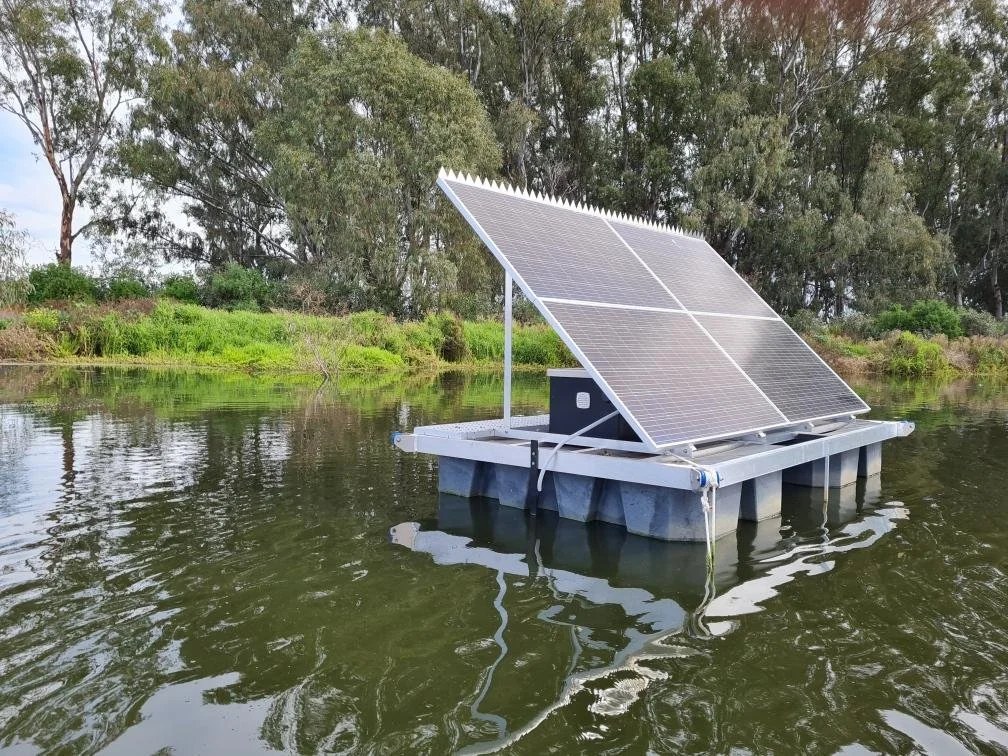 These pontoons can also be equipped with a GSM unit for real-time monitoring of solar panel performance, transducer operation, and GPS location.